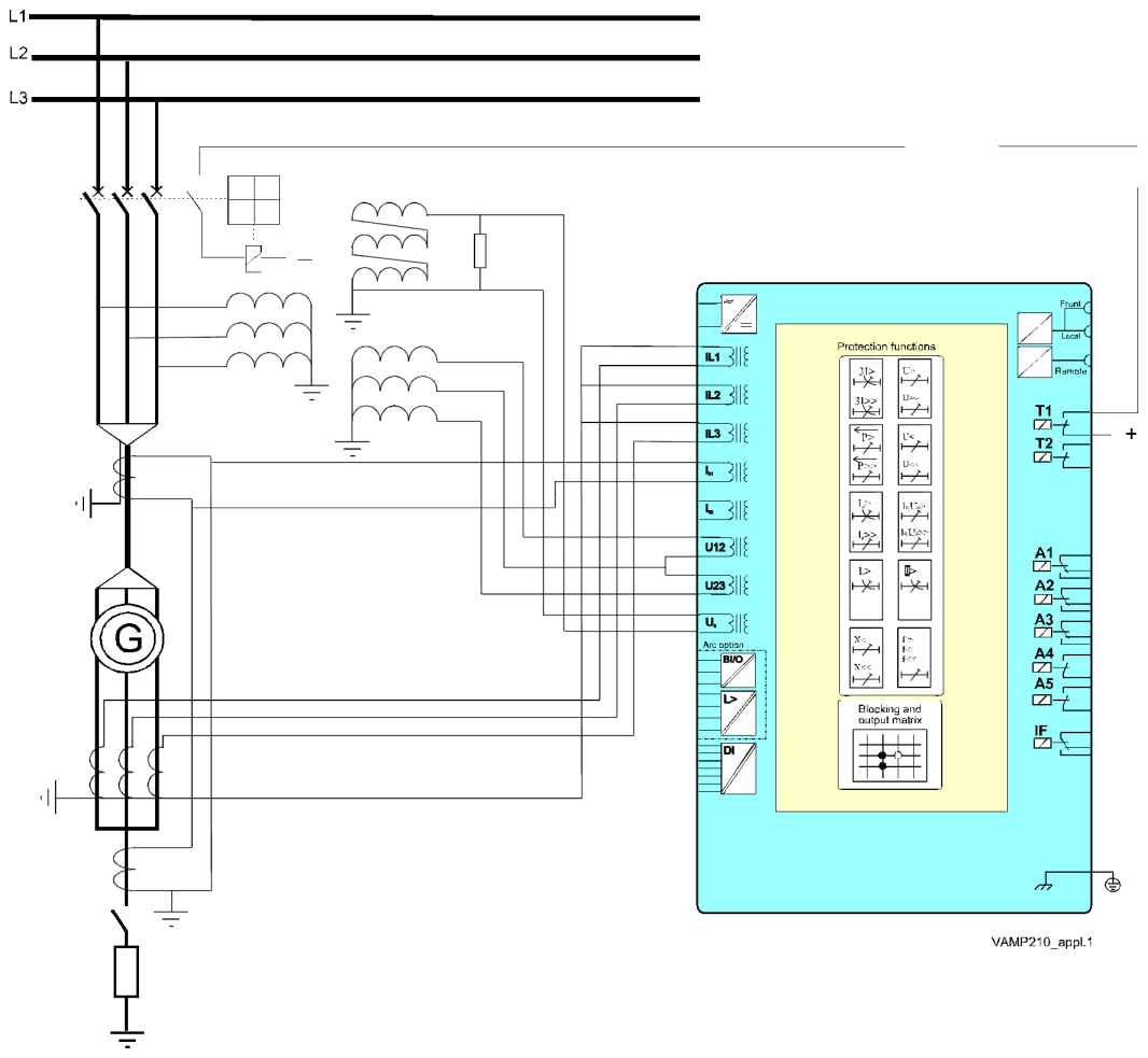 VAMP 210 Documentation Connection DiagramThe protection functions, many communication protocols and numerous auxiliary functions make the VAMP 210 perfect for small and medium sized generators.